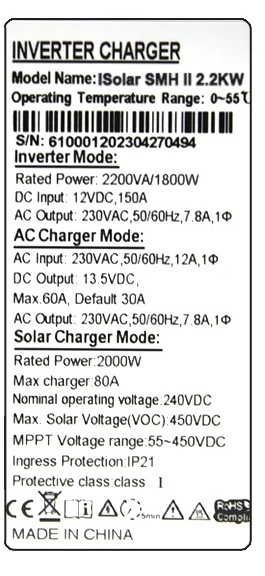 Описание и характеристики EASUN 2.2kW 12V ISolar-SMH-II-2.2KW (2200VA/1800W, Max CH 80A, AC 60)