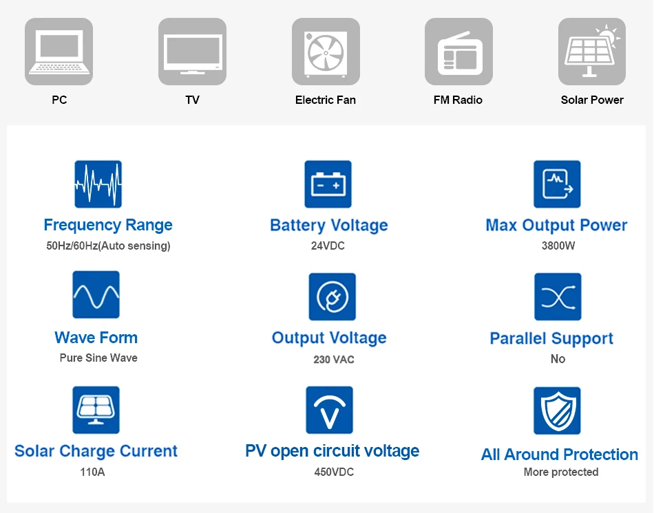 - EASUN 4.2kW 24V ISolar SMH-II-4.2KW-24V (4200VA/3800W, Max CH 110A, AC 80) Wi-Fi EASUN 4.2kW 24V ISolar SMH-II-4.2KW-24V (4200VA/3800W, Max CH 110A, AC 80) Wi-Fi