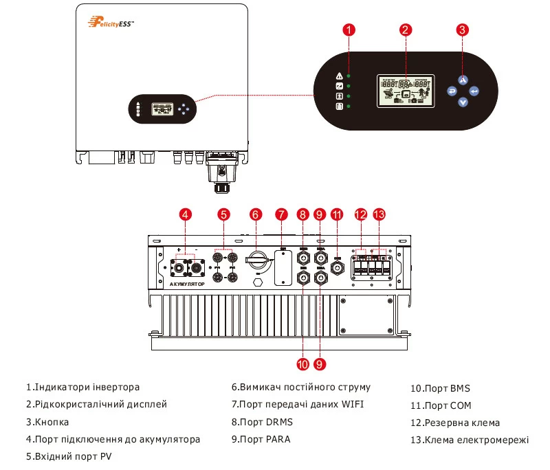 Гибридный инвертор солнечный FelicityESS T-REX-6KLP1G01 (6kW, 48V, 1Ph, 2-MPPT) Wi-Fi