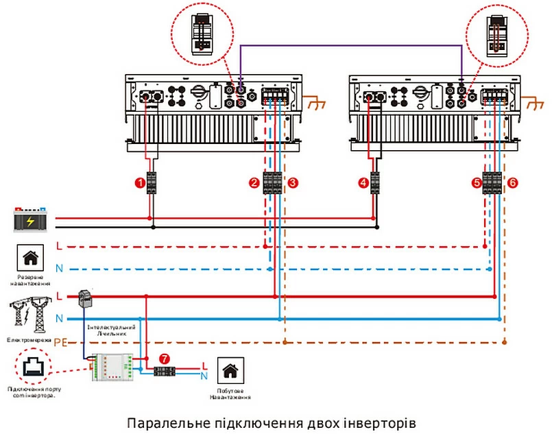 Поддержка параллельной работы нескольких инверторов позволяет масштабировать систему, увеличивать суммарную мощность или формировать трёхфазную конфигурацию, что делает устройство удобным для расширения солнечной станции в будущем.