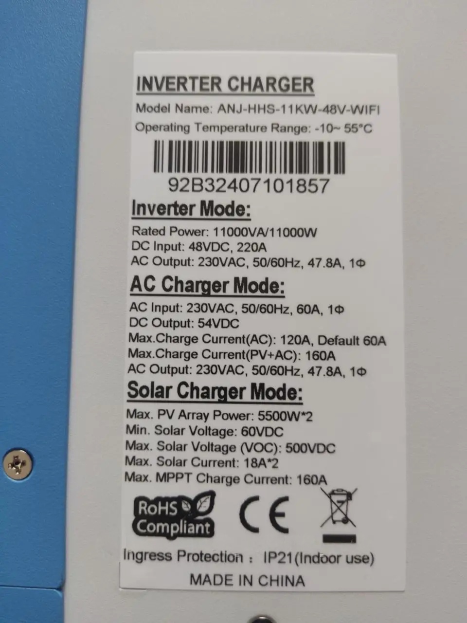 - Anenji 11000W 48V ANJ-HHS-11000W-48V (1100VA/1100W, Max CH 160A, AC 120) Wi-Fi Anenji 11000W 48V ANJ-HHS-11000W-48V (1100VA/1100W, Max CH 160A, AC 120) Wi-Fi