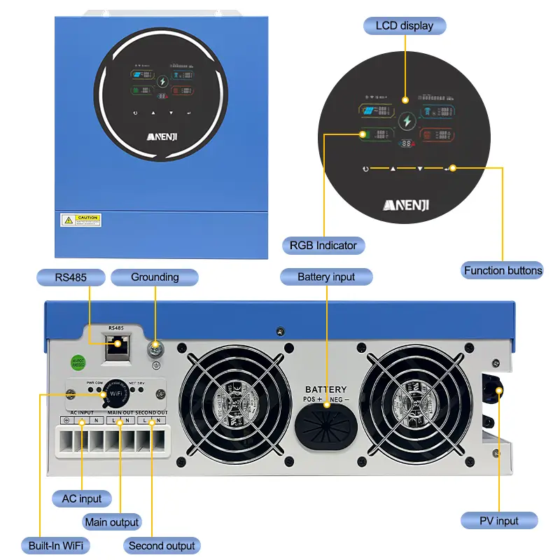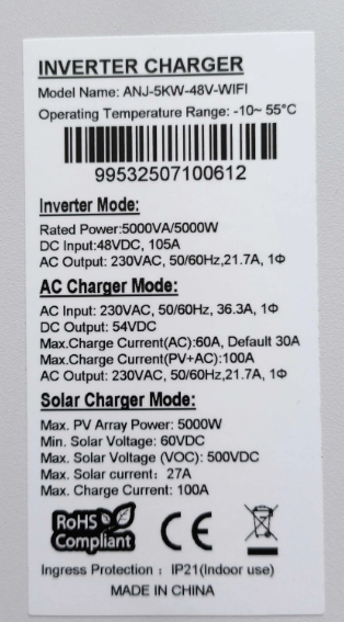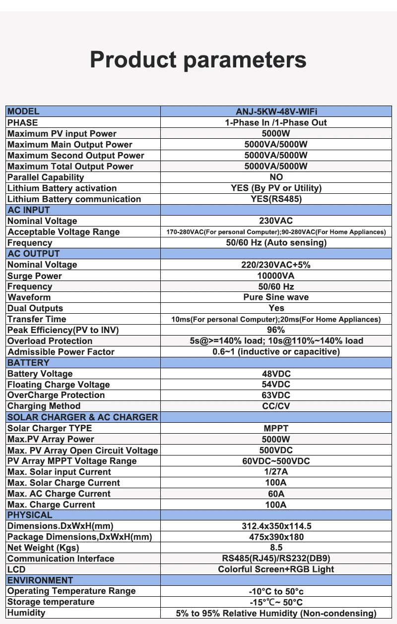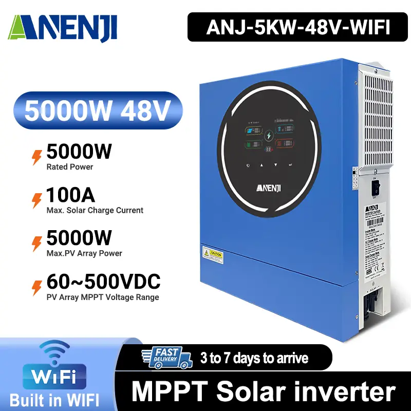 - Anenji 5000W 48V ANJ-5KW-48V (5000VA/5000W, Max CH 100A, AC 60) Wi-Fi Anenji 5000W 48V ANJ-5KW-48V (5000VA/5000W, Max CH 100A, AC 60) Wi-Fi