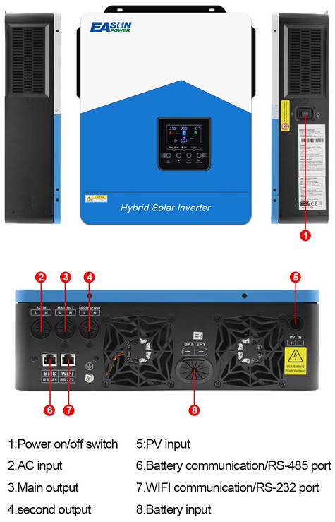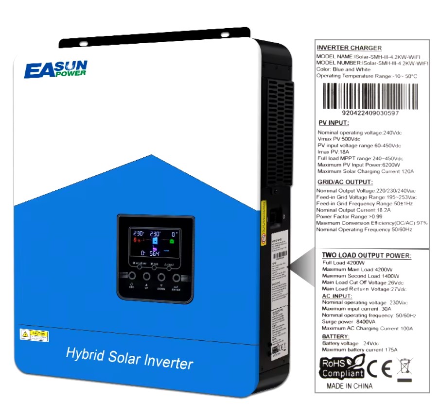 Опис та характеристики EASUN 4.2kW 24V ISolar-SMH-III-4.2KW (4200VA/4200W Max CH 120A, AC 100) Wi-Fi