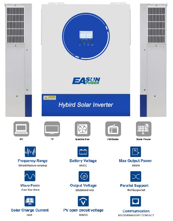 - EASUN 8.5kW 48V ISolar-SMG-II-8.5KW (8500VA/8500W, Max CH 140A, AC 120) Wi-Fi EASUN 8.5kW 48V ISolar-SMG-II-8.5KW (8500VA/8500W, Max CH 140A, AC 120) Wi-Fi