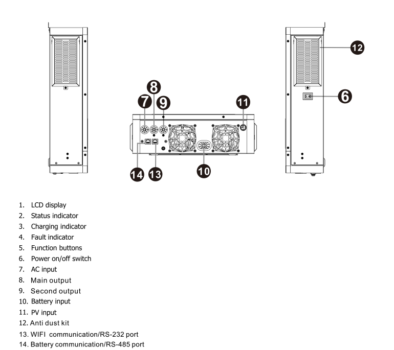 Модель PowMr 4200W 24V POW-HVM4.2M-24V-N (Max CH 120A, AC 100) - це багатофункціональне пристрій, що поєднує в собі функції інвертора, сонячного зарядного пристрою MPPT і зарядного пристрою для акумуляторів для забезпечення безперебійного живлення. Його великий великий РК-дисплей пропонує настроювані користувачем і доступні операції з сенсорними кнопками, такі як струм зарядки акумулятора, пріоритет змінного/сонячного зарядного пристрою і прийнятна вхідна напруга в залежності від різних програм.