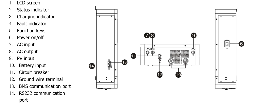Пристрій дозволяє одночасно живити навантаження від PV-панелей та мережі, а також оснащений функціями холодного запуску та автоматичного перезапуску при відновленні електропостачання. Інтелектуальна система заряджання забезпечує більш повне використання ємності АКБ, підвищуючи загальну ефективність системи. Для зв'язку з BMS передбачено порт RS485, що забезпечує стабільний обмін даними та розширені можливості моніторингу. Також у комплекті постачається бездротовий модуль Wi-Fi.