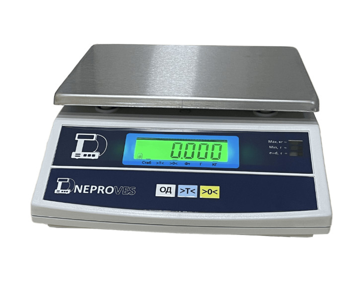 - Весы Днепровес ВТД-ТЗС-6 - модель с пределом взвешивания 6 кг и дискретностью измерений 2 г арт. 13130 (Вы находитесь на странице этой модели);